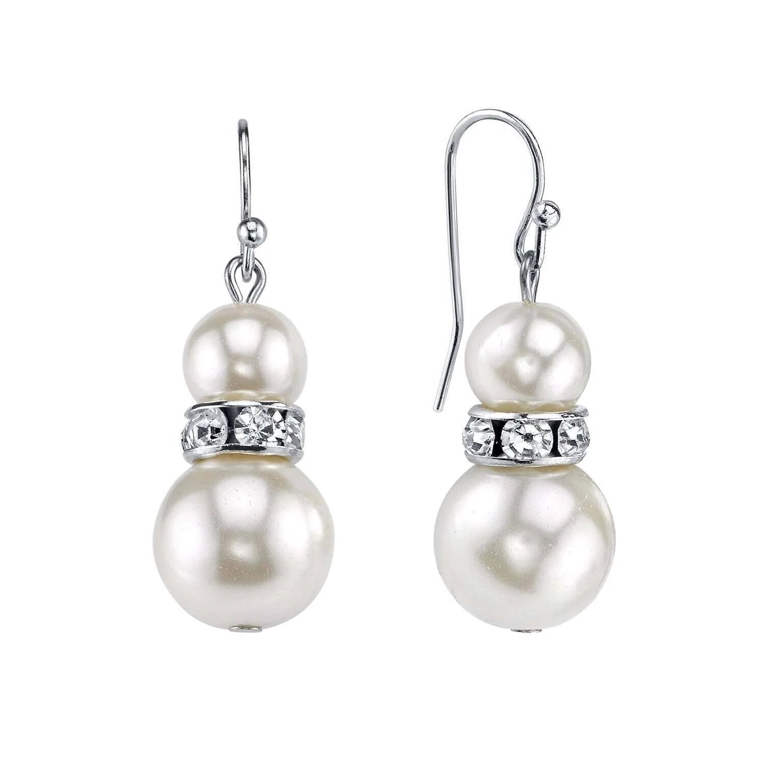 White Double Drop Faux Pearl Earrings